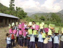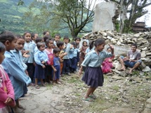 In 2009 the original Shree Aanku Primary School at Masser near Khahare was destroyed by a landslide in the monsoon rains. Help Rural Nepal was founded to raise funds to rebuild this school by assisting in the purchase of a new site on flatter ground, and with the help of local craftsmen as much as possible was salvaged from the old school and reused. The replacement school with 4 classrooms, a library, a staff room and 2 toilets was completed in 2010.